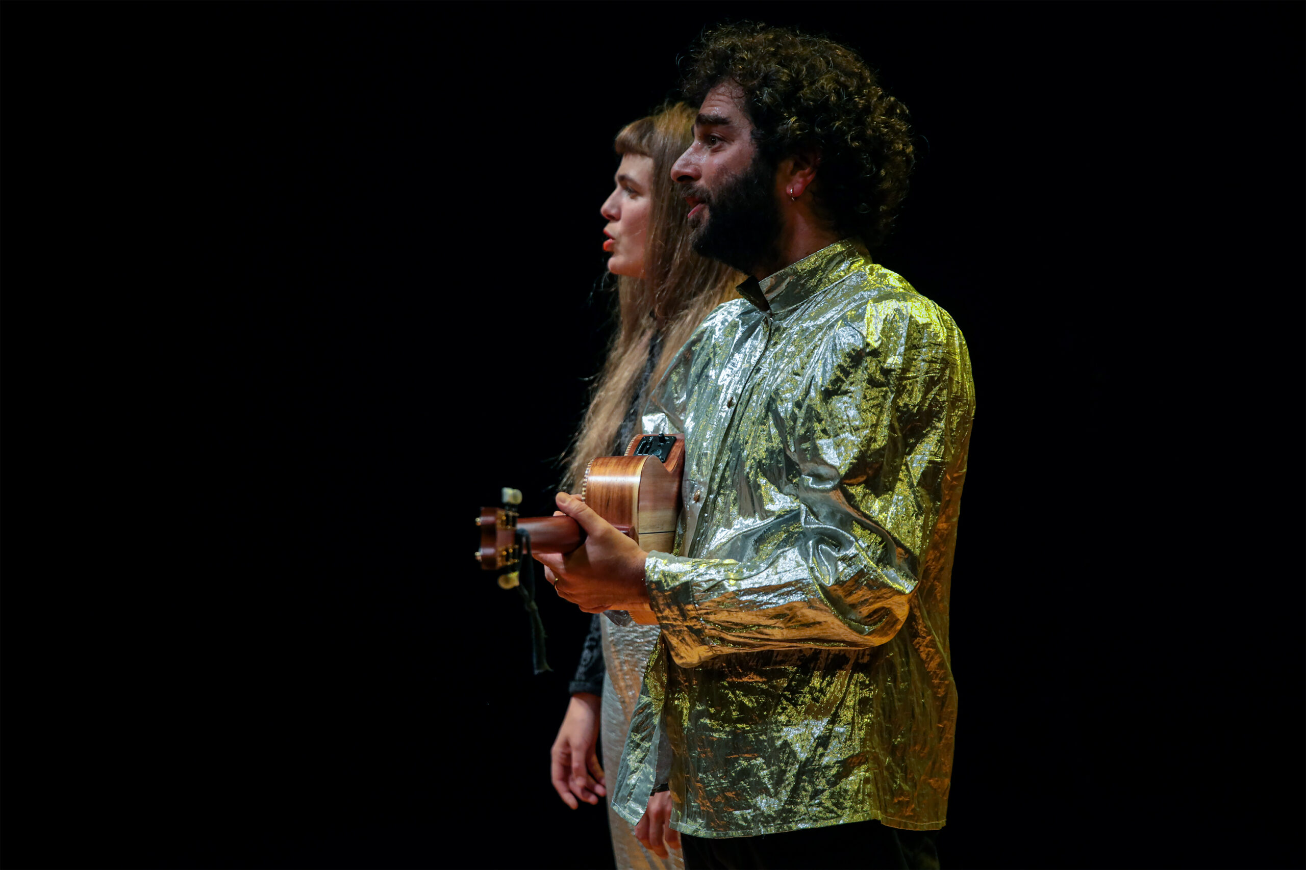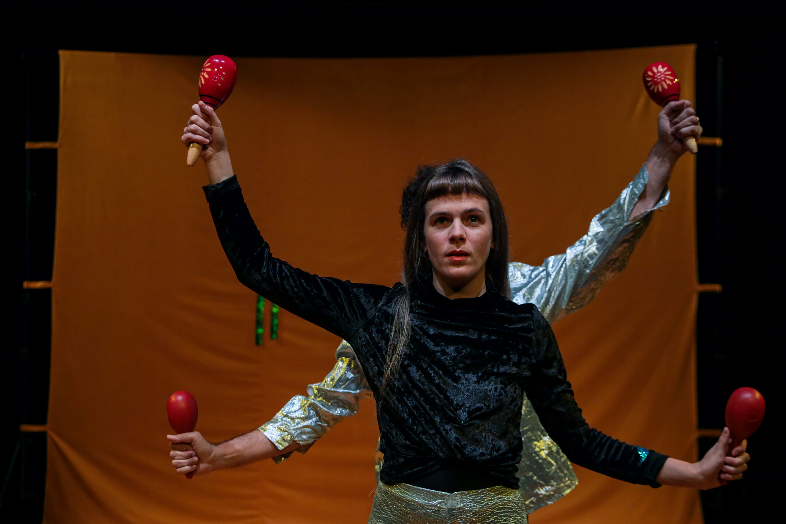 Livrar os produtos finitos da sua moldura, tirá-los da montra, voltar a dar-lhes vida, reciclar e devolver-lhe a prática popular: frente – a – frente explora este jogo, pega em culturas pop do mundo, apropria-se da potência delas com tambores, voz e corpo e volta a torná-las prática popular.