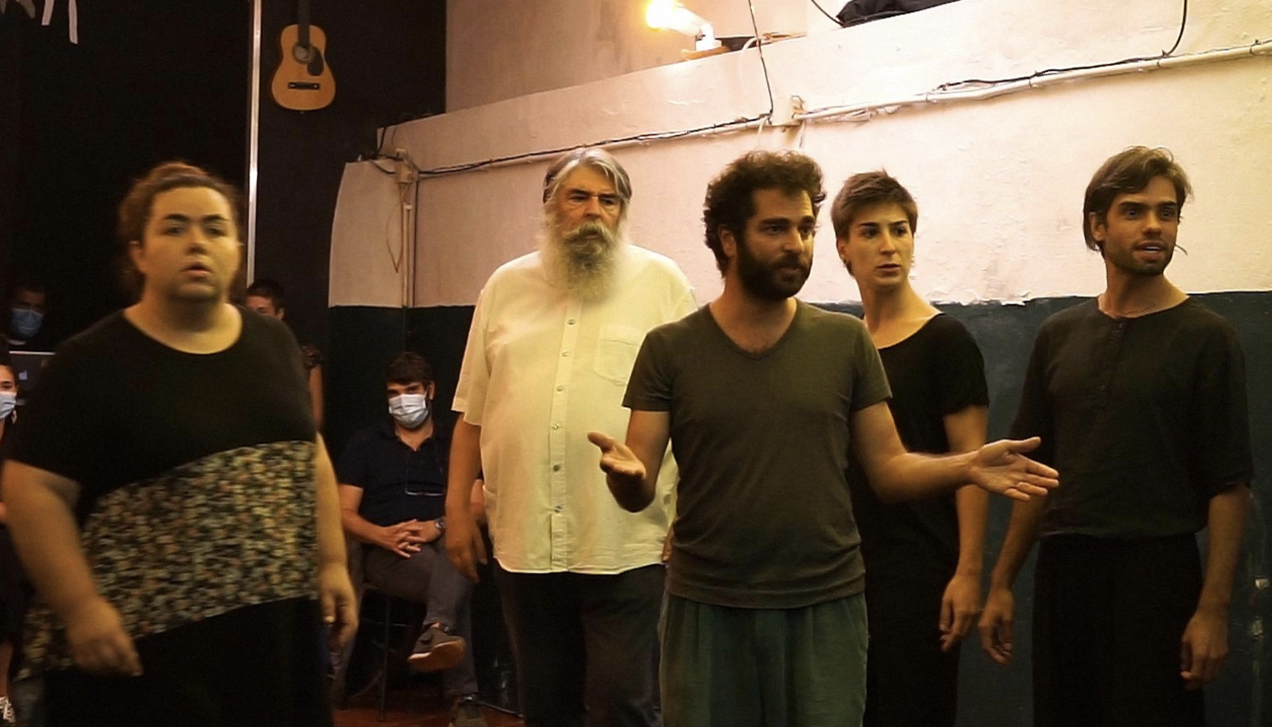 Uma sombra. Uma mesa de café. O lancil de um degrau. Lugares de encontro para um possível diálogo entre dois desconhecidos. Falar. Agir com e sobre a palavra, projetar campos de ação, desejo e imaginação. Falar com um desconhecido em espaço público – construir possibilidades, regenerar o espaço público enquanto lugar de encontro com o que nos é desconhecido. Durante 4 dias, um conjunto de atores, caminhará pelo bairro das Fontaínhas, inspirado por um glossário de ideias, procurando dialogar sobre elas, construindo em cada cruzamento um campo de ação, ressignificação e reescrita, numa relação íntima e irrepetível de 1 para 1. Durante 4 dias, após a deriva diária, o elenco chega ao espaço da performance, onde em tempo real e em jogo performativo, ante a presença do público, atualiza em ação e relação performática, o glossário das ideias iniciais a partir dos encontros tidos, permitindo que um outro texto plural, polifônico e polissêmico se manifeste e se reescreva.