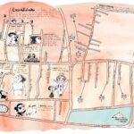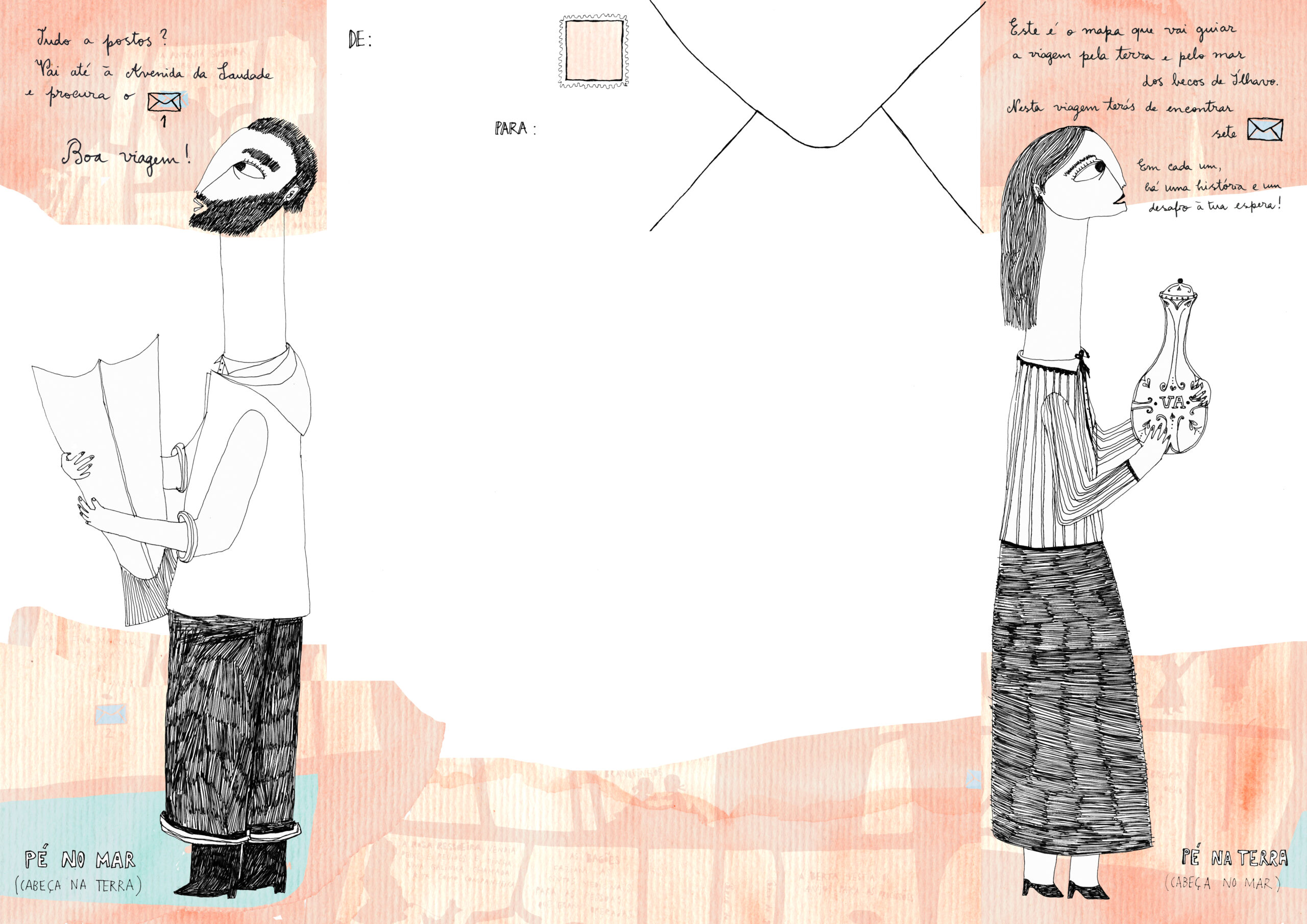 Criação, mapa e envelopes ilustrados: